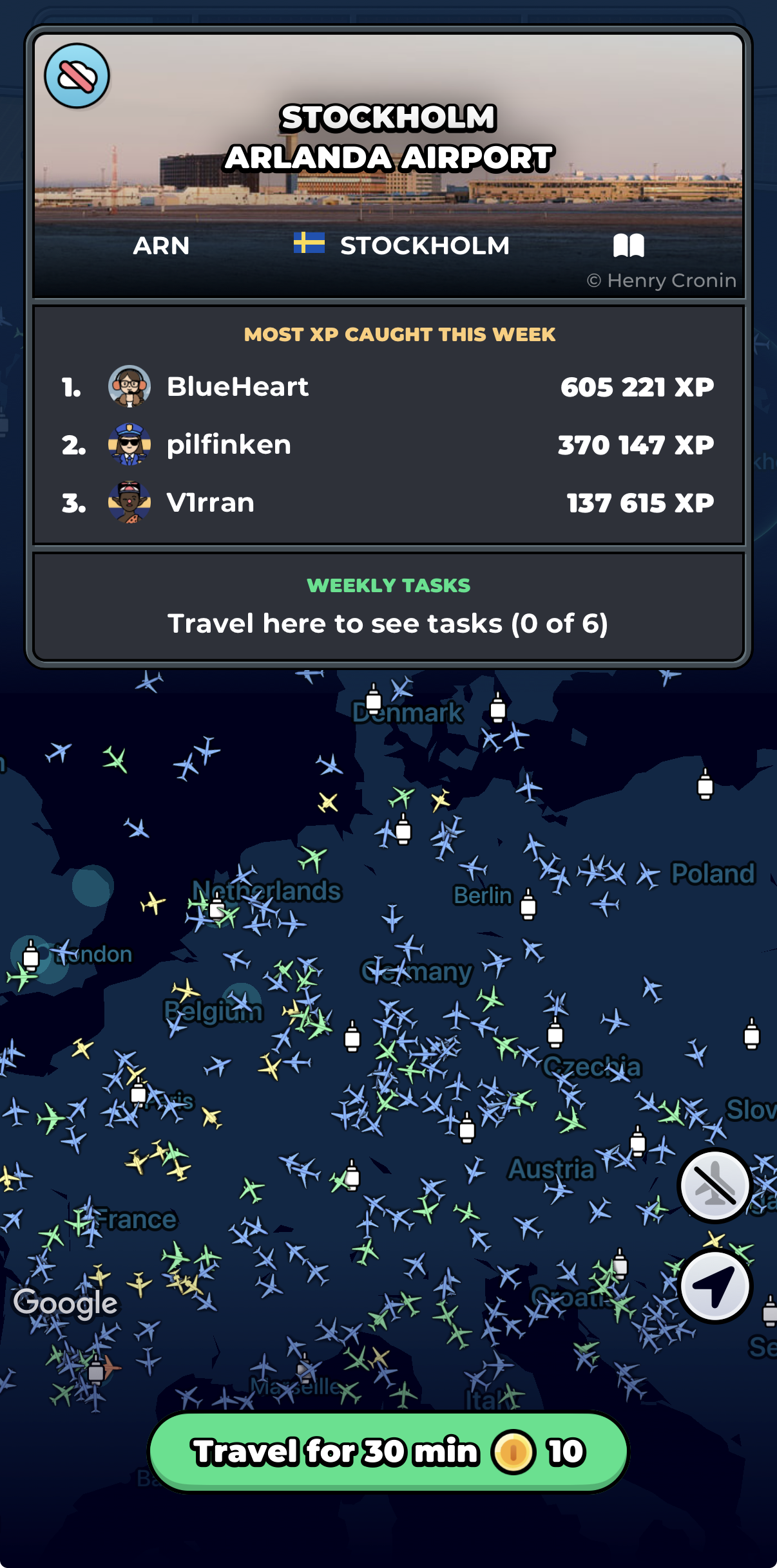 In Skycards, XP for airport high scores is earned when users catch aircraft bound for the specific airport in question.
